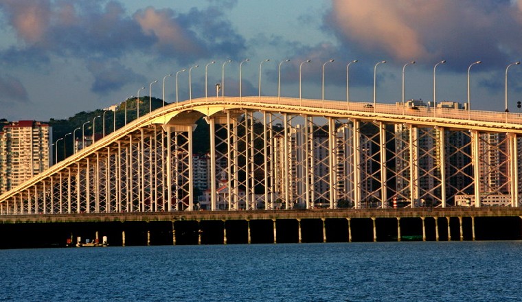 澳凼大橋,橫跨澳凼海面,弧度很大,有如長虹臥波,設計獨特,予人既雄偉又玲瓏的印象,給古老的澳門平添現代氣息。版權所有山東聊城聊之旅國際旅行社有限公司,轉載必究!入夜后,橋燈吐亮,如珠連串,又給濠江夜空增添璨璀光彩。在不同季候,無論日夜,大橋都被烘托出秀麗的身影,成為澳門的風景線,也成為澳門發展的標志。