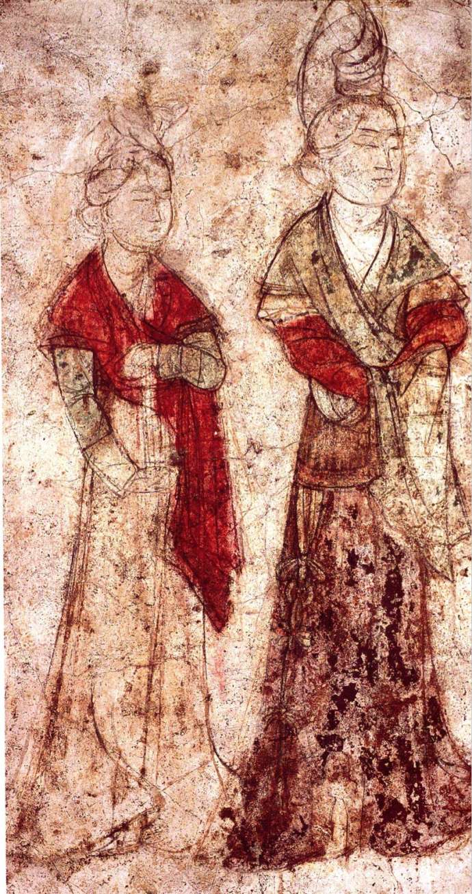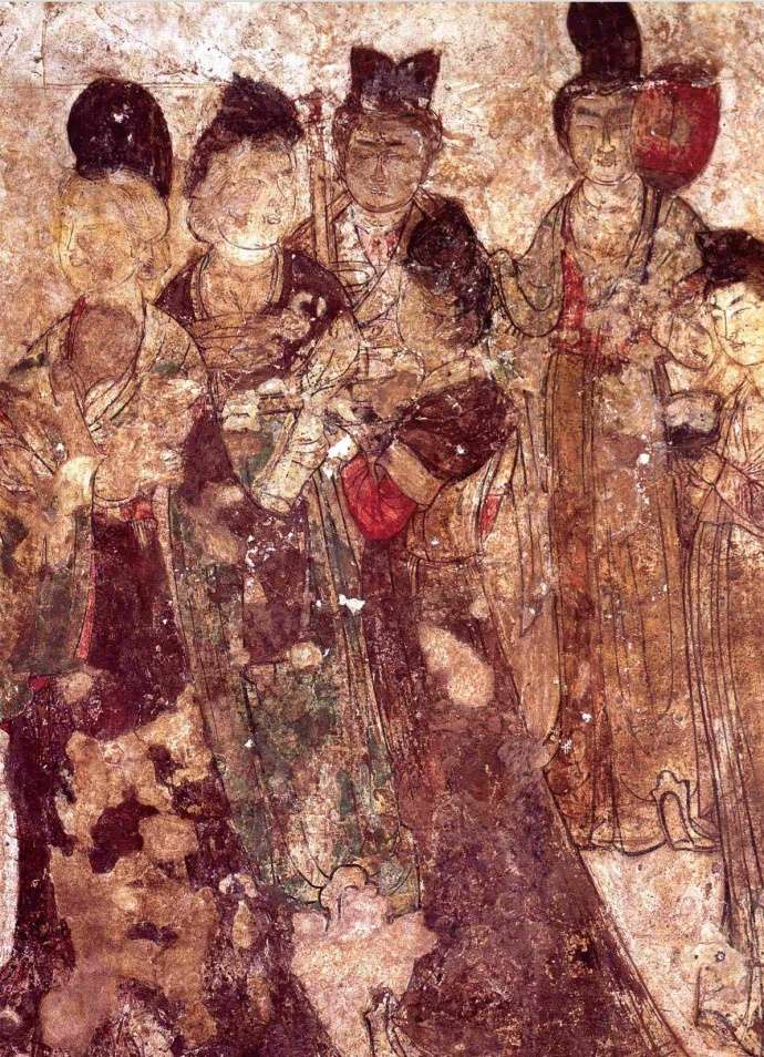 后室壁畫以東壁較完整。畫面兩組宮女19人,分別手托果盤、執箜篌、持琴、抱琵琶、捧燭臺、捧包袱、捧方盒、持瓶等。頂部畫天體,東是金烏(太陽),西是蟾蜍,還有銀河和星星。版權所有山東聊城聊之旅國際旅行社有限公司,轉載必究!墓室西側放置石槨一具,槨內殘存兩副被攪亂過的人骨架,其中有男左肱骨、左右股骨、骨盆和女左右肱骨、左右橈骨。經鑒定,在男骨盆上有一條明顯的骨骺線,斷定其年齡不超過20歲,與文獻記載懿德太子卒年僅19歲和以裴粹已死之女為冥婚合葬均相符合。