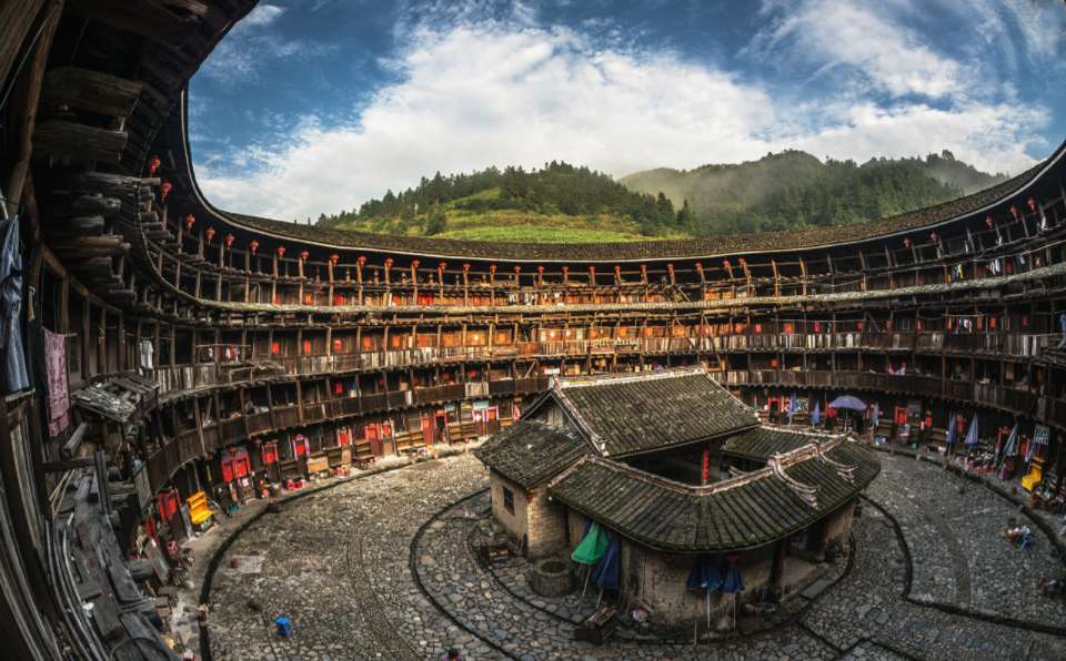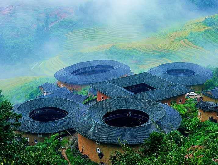 福建土樓產生于宋朝時代,明、清朝時期逐漸成熟,并一直延續至今。福建土樓是世界上獨一無二的山區大型夯土民居建筑,依山就勢,布局合理,吸收了中國傳統建筑規劃的“風水”理念,適應聚族而居的生活和防御要求,巧妙地利用了山間狹小的平地和當地的生土、木材、鵝卵石等建筑材料,是一種自成體系,具有節約、堅固、防御性強的特點,又極富美感的生土高層建筑模式。福建土樓的建筑材料甚為奇特,由粘土、糯米、紅糖、竹片、水組成,建成的土樓冬暖夏涼,具有很強的抗臺風、抗地震能力。曾為湖南衛視《爸爸去哪兒第三季》第三站的拍攝地。2016年8月3日,國家旅游局召開新聞發布會,嚴重警告南靖土樓景區。