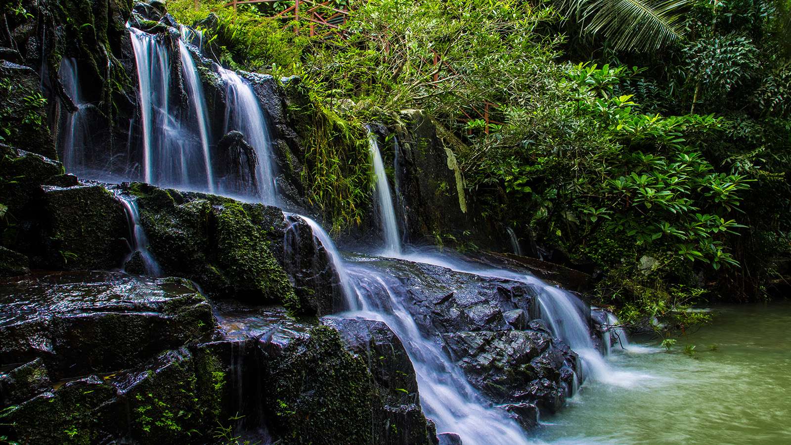 “踏瀑戲水”拓展活動設置在呀諾達雨林縱深1.2公里、落差200米的夢幻谷中,急流、怪石、瀑布、巨樹等構成了一個令人熱血沸騰、幾欲征服的神秘地帶。穿上草鞋,戴著頭盔,您就可以出發了。溯溪而上,在穿越急流險灘、深潭飛瀑的同時,沿途還可欣賞夢幻谷美景。