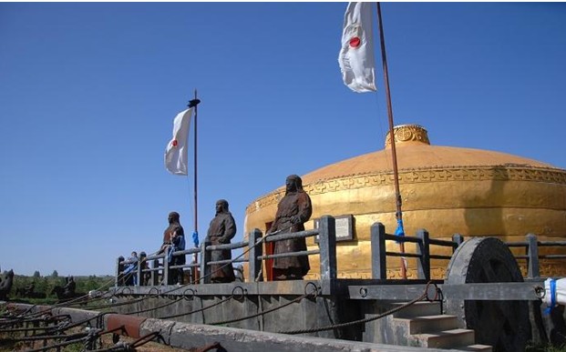 成吉思汗陵旅游區位于鄂爾多斯市東南部伊金霍洛旗的甘德爾草原上。坐落在內蒙古鄂爾多斯草原中部的伊金霍洛旗甘德利草原上,距東勝市70公里,距包頭市185公里。現今的陵園建于1954年,是全國重點文物保護單位之一。版權所有山東聊城聊之旅國際旅行社有限公司,轉載必究!成吉思汗陵作為一座民族的豐碑,記載著蒙古民族滄桑的歷史和燦爛的文化。 傳說,成吉思汗在率軍征西夏時,路過鄂爾多斯。目睹這里水草豐美,花鹿出沒,確是一塊風水寶地。他被美麗的自然景色所陶醉,失手將馬鞍掉在地上,部下正要拾起馬鞍,被成吉思汗制止了,自語道。這里是“梅花鹿兒棲身之所,戴勝鳥兒育雛之鄉,衰落王朝振興之地,白發老翁享樂之邦”。并對左右囑咐:“我死后可葬于此處”。成吉思汗去世后,運送其靈柩的靈車行至鄂爾多斯時,車輪突然陷進沼澤地里,套上很多牛馬都拽不出來。護送靈車的將領回想起成吉思汗曾經說過的話,于是將其“氈包、身穿的衫子和一只襪子"安放在這里,并進行供奉。