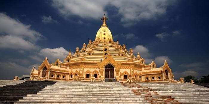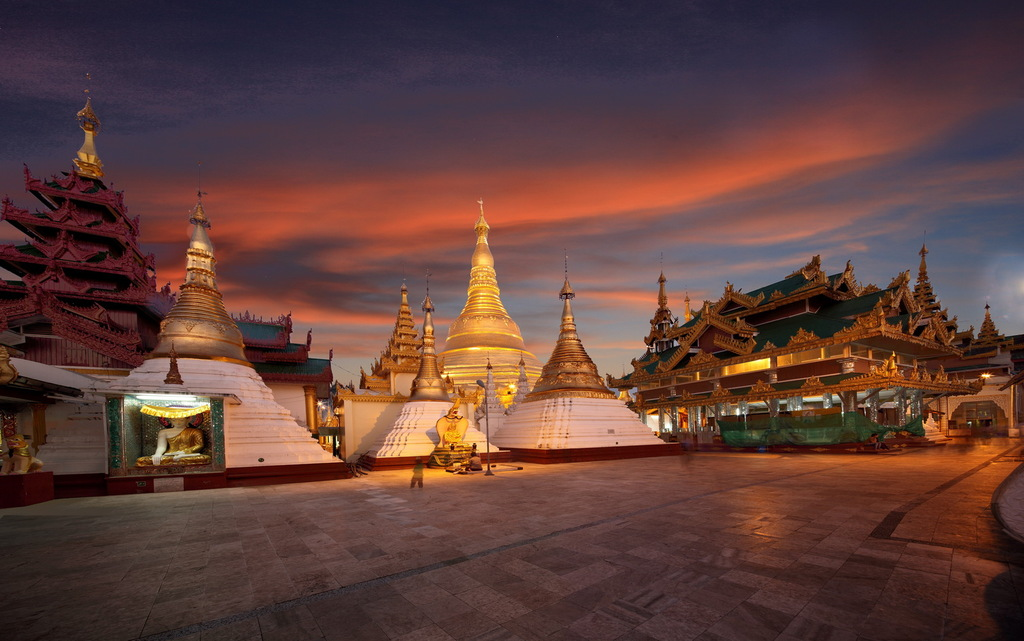 大金塔是仰光最具代表性的景點,塔高110米,坐落于市內一座小山上,表面涂有72噸的黃金,塔頂由近3000克拉的寶石鑲嵌而成。整個建筑群非常雄偉,在陽光的照射下顯得奪目而耀眼。傳說是保存有佛祖八根頭發的商人兩兄弟建成,已有2500年的歷史。