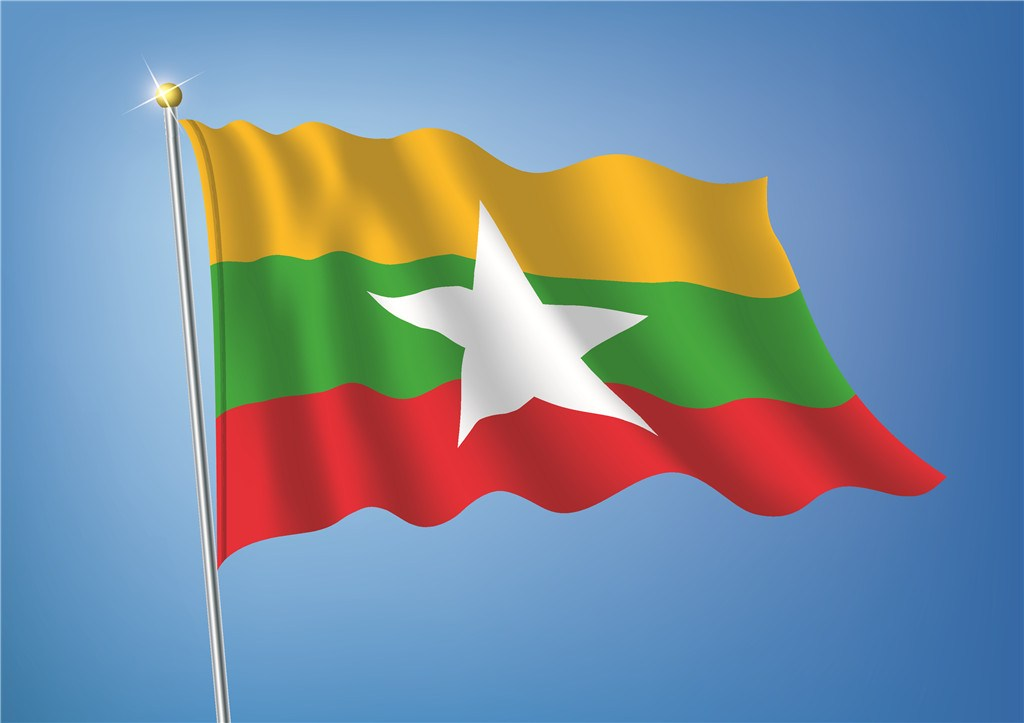 2010年10月21日,根據緬甸國家和平與發展委員會21日頒布的法令,緬甸正式啟用《緬甸聯邦共和國憲法》確定的新版緬甸國旗和國徽,國歌保持不變。緬甸的新國旗為黃綠紅三色,中有白色五角星。綠色代表和平、安寧、草木茂盛、青蔥翠綠的環境,黃色描繪出團結,紅色象征勇敢與決心,白星反映出堅強聯邦永恒不墜的意義。