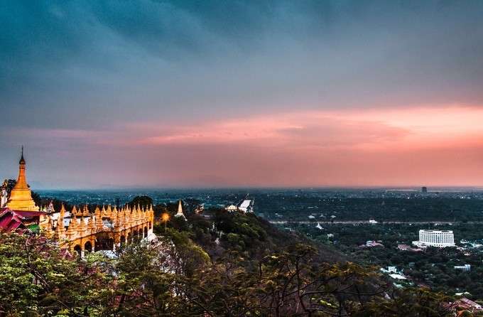 曼德勒的名字也是來自這座城內(nèi)最高的山丘——曼德勒山。當年釋迦牟尼宣揚佛法時路過此山,指著山下廣袤的土地,預(yù)言2400年后,這里會出現(xiàn)一座繁華的大城。曼德勒果然不負所望,在敏東國王的統(tǒng)治下,30年的榮景在歷史中點綴成不朽的一頁。