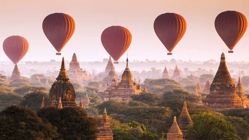 1989年,緬甸政府開始依據歷史圖片和資料重建,恢復了89個主要大殿,1996年9月竣工并對公眾開放。