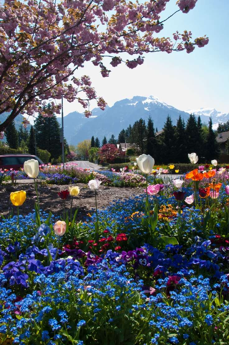 因特拉肯(INTEL‘LAKEN,即“湖間”之意)屬伯爾尼州,距離伯爾尼市約50公里,地處圖恩湖和布里茵茨湖之間,海拔只有568米,是瑞士著名的風景區之一。這里群山環抱,綠色草場廣闊開敞,瑞士著名的少女峰終年白雪冠頂,倒映綠色湖中,遠山近水,湖光瀲滟,置身此地,如在畫中。
