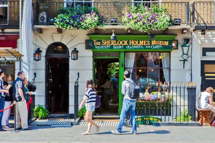 貝克街221B號(及239號)是于1990年成立的福爾摩斯博物館(Sherlock Holmes Museum),館內的布置擺設都以小說中提及的情節為佐,更增添福爾摩斯舊居的真實性。這是個精巧迷人的觀光場所,福爾摩斯與華生醫生的辦公室都依據故事內容重新裝潢。你可以坐在一樓書房的爐子旁,試戴福爾摩斯的帽子,并拿著他的煙斗,模仿他的姿勢。再走一點,就會看到真正的221B號,它現在是國家教堂,這里每周都會收到從世界各地的福爾摩斯迷寄來的一百多封信。親自造訪教堂的人們,可以免費拿到福爾摩斯簡冊與明信片。