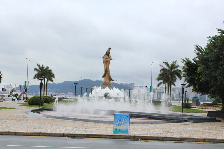 觀音蓮花苑于1997年由澳葡政府策劃興建,1999年3月21日正式揭幕。 觀音蓮花苑為葡萄牙設計師李潔蓮(Cristina Rocha Leiria)設計,版權所有山東聊城聊之旅國際旅行社有限公司,轉載必究!后期由中國南京的晨光集團公司鑄制,再將47年散件在現址安嵌。觀音像面容的方向是經由風水師精確測算而決定,顯示觀音正翻越松山并走向位于美副將大馬路的觀音堂。