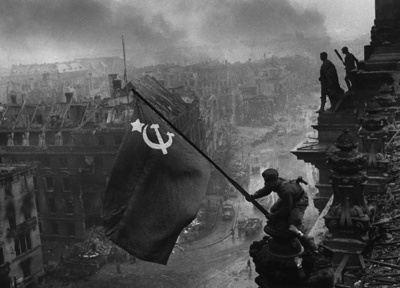 1945年4月30日下午2時半,紅軍戰士把紅旗插上德國國會大廈。就在此刻,法西斯頭子希特勒用手槍結束了罪惡一生。希特勒死后,德軍沒有馬上投降,爭奪國會大廈的戰斗依然在進行。5月1日,蘇軍向柏林市中心的德軍最后據點發起攻擊,先后攻下了德國空軍大廈、秘密警察總部大廈。直到5月2日下午3時,德軍才完全停止抵抗,柏林市防司令率殘部投降。5月8日,德國簽署了無條件投降書,歐洲戰場的戰爭宣告結束。