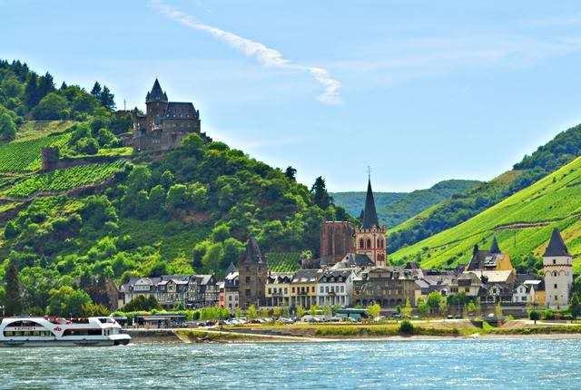 在德國境內有867公里。沿途風景最美的一段在中游的萊茵河谷段,從德國的美因茲(Mainz)到科布倫茨(Koblenz)間。這里河道蜿蜒曲折,河水清澈見底。人們坐在白色的游艇之上,極目遠望,碧綠的葡萄園層次有序地排列在兩岸,一座座以桁架建筑而引人注目的小城和五十多座古堡、宮殿遺址點綴在青山綠水之中。版權所有山東聊城聊之旅國際旅行社有限公司,轉載必究!一段段古老的傳說不時把人們的思緒帶向遙遠的過去,人們深深地陶醉在這充滿浪漫情趣的多姿多彩的萊茵河美景之中。為了保護自然風景的原貌,萊茵河河谷段沒有架設橋梁,往來兩岸都靠輪渡。兩岸風景有點像中國的三峽,但山沒有三峽的高、陡。沿河兩岸山坡上遍布葡萄園,點綴著無數羅馬時代的古堡。