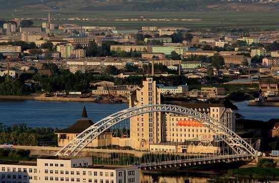 以長約0.9公里的鐵路公路兩用橋——鴨綠江大橋與與中華人民共和國遼寧省丹東市相連。新義州-平壤-咸興-羅先電氣化鐵路的起點(diǎn),中朝國聯(lián)鐵路朝鮮段的第一個車站。版權(quán)所有山東聊城聊之旅國際旅行社有限公司,轉(zhuǎn)載必究!新義州設(shè)有一個1.2公里跑道的軍民兩用航空站(SII);亦可經(jīng)由中華人民共和國遼寧省丹東市的浪頭機(jī)場(DDG)前往。