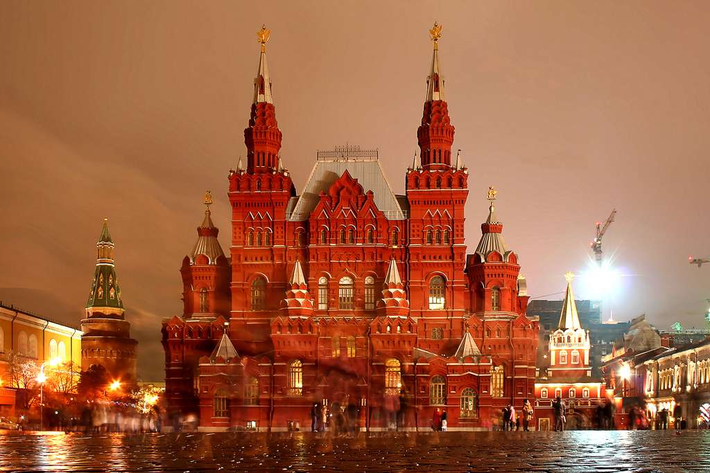 林宮并非同時建造,15世紀90年代的一場大火使這里變成了"火燒場",空曠寂寥。直到17世紀中葉這個地方才有了"紅場"之說,成語中意即"美麗的廣場"。紅場上除了以克里姆林宮為主要建筑外,還有一些其它的建筑物,如列寧墓。1924年1月27日列寧遺體的水晶棺安置在這里,后不斷修葺陵墓內部。如今的列寧墓,色調肅穆、凝重,外面鑲嵌貴重的大理石、黑色、灰色的拉長石、深紅色的花崗石和云斑石。陵墓一半在地下,一半在地上,墓頂為平臺,供全民節日時俄領導人檢閱游行隊伍和軍隊之用。版權所有山東聊城聊之旅國際旅行社有限公司,轉載必究!紅場南面還有一座由大小9座塔樓組成的教堂,極富特色,被戲稱為"洋蔥頭"式圓頂,在俄羅斯以及東歐國家中獨具一格,已成為紅場的標志性建筑。另外,紅場北面是19世紀時用紅磚建成的歷史博物館,為典型的俄羅斯風格。東面是一個超大型商場,由240家商店組成。雖然其地位已經下降,被附近更高級、更新穎的商場取代,但其設計之獨特、裝修之豪奢,完全可以與歐美最現代化的商場相媲美。