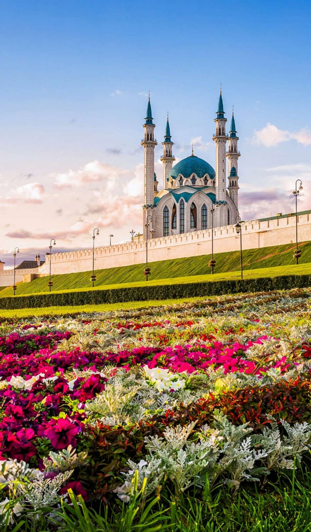 宮墻內,林木蔥郁,花草繁茂,教堂聳峙,殿宇軒昂,政府大廈拔地而起,各種博物館穿插 其間。宗教建筑群中首推巍峨壯觀的圣母升天大教堂,建于15世紀后期,其山字形拱門和金色 圓塔,帶有俄羅斯東北部的風格,一直是俄皇舉行加冕大禮的地方。稍晚于圣母升天大教堂建成的報考教堂,造型美觀,頂端有9個金色圓頂,是皇族子孫的洗禮與結婚之地。天使大教堂興建 于16世紀初葉,是彼得大帝以前莫斯科公園歷代帝王的墓地。