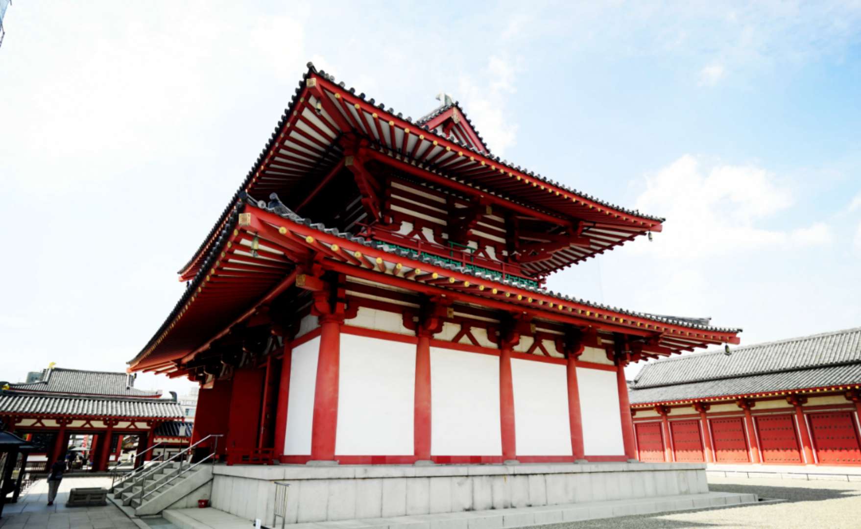 該寺建于離大阪灣不遠的地方,而大阪灣在貿易與運輸領域中扮演著重要的角色,這個具有戰略意義的地理位置使日本得以向全世界展現其實力與繁榮。后來,該寺盡管經歷過多次重建,但建筑風格、布局與最初相比并沒有太大的變化。
