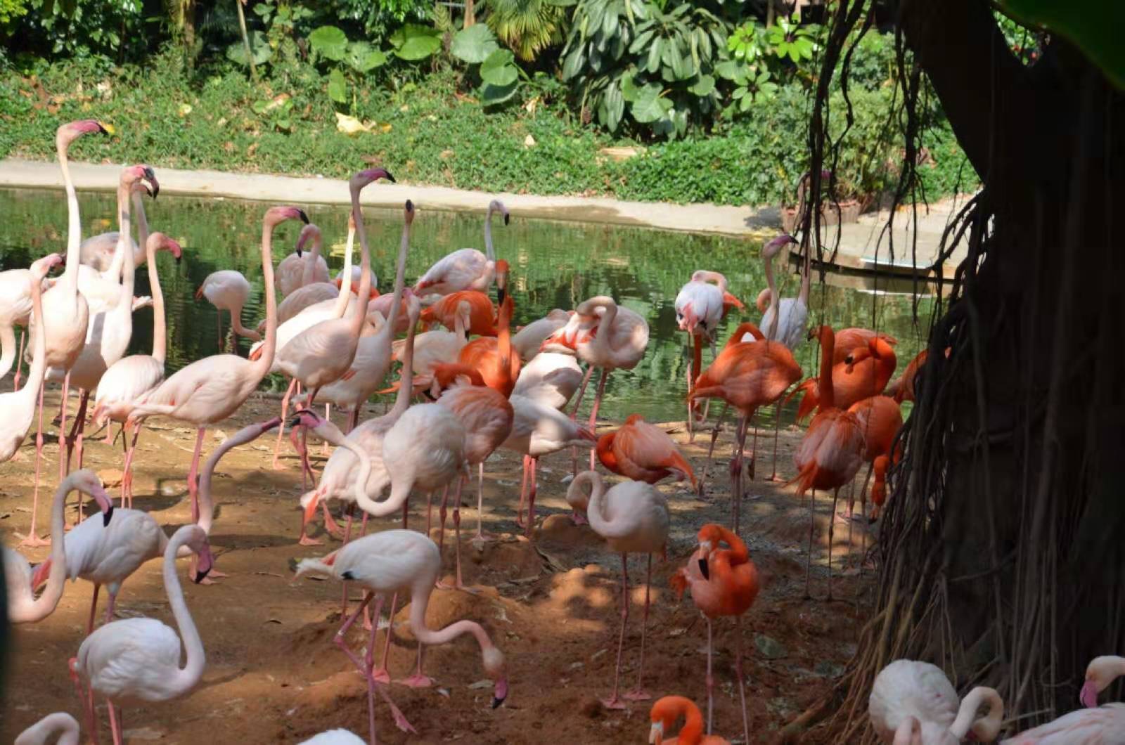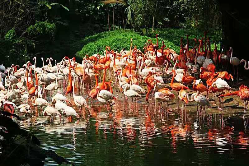亞馬遜雨林位于南門(mén)入口,這里有一片霧氣彌漫的雨林中心,這里正是成百只火烈鳥(niǎo)的家,火紅的火烈鳥(niǎo)把綠意盎然的島變成了火燒島,熱鬧而聒噪的火烈鳥(niǎo)叫聲顯示出這片雨林無(wú)限的活力。游客可以選擇環(huán)湖綠道或者熱帶雨林小道兩條路線(xiàn)進(jìn)行參觀:綠道可以欣賞雨林全貌,而小道也是觀景也是別有風(fēng)味,可以沿途觀賞多種珍稀植物。行走于熱帶雨林小道深入到雨林區(qū)的核心,為了模擬雨林的濕氣和生態(tài),沿途安裝了高科技噴霧裝置,即使在炎炎夏日,行走在雨林小道,仿佛如行走在真正的熱帶雨林一般涼爽濕潤(rùn)。