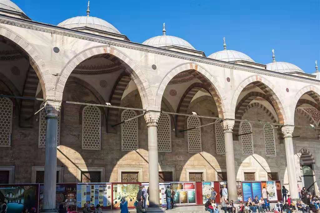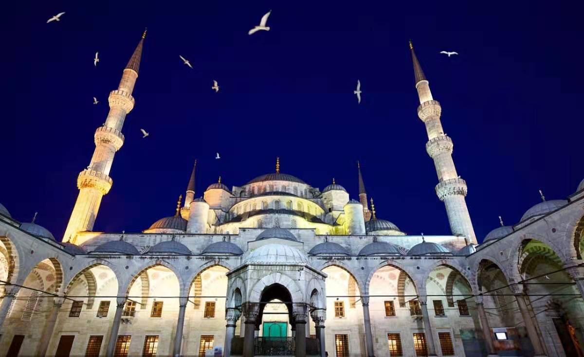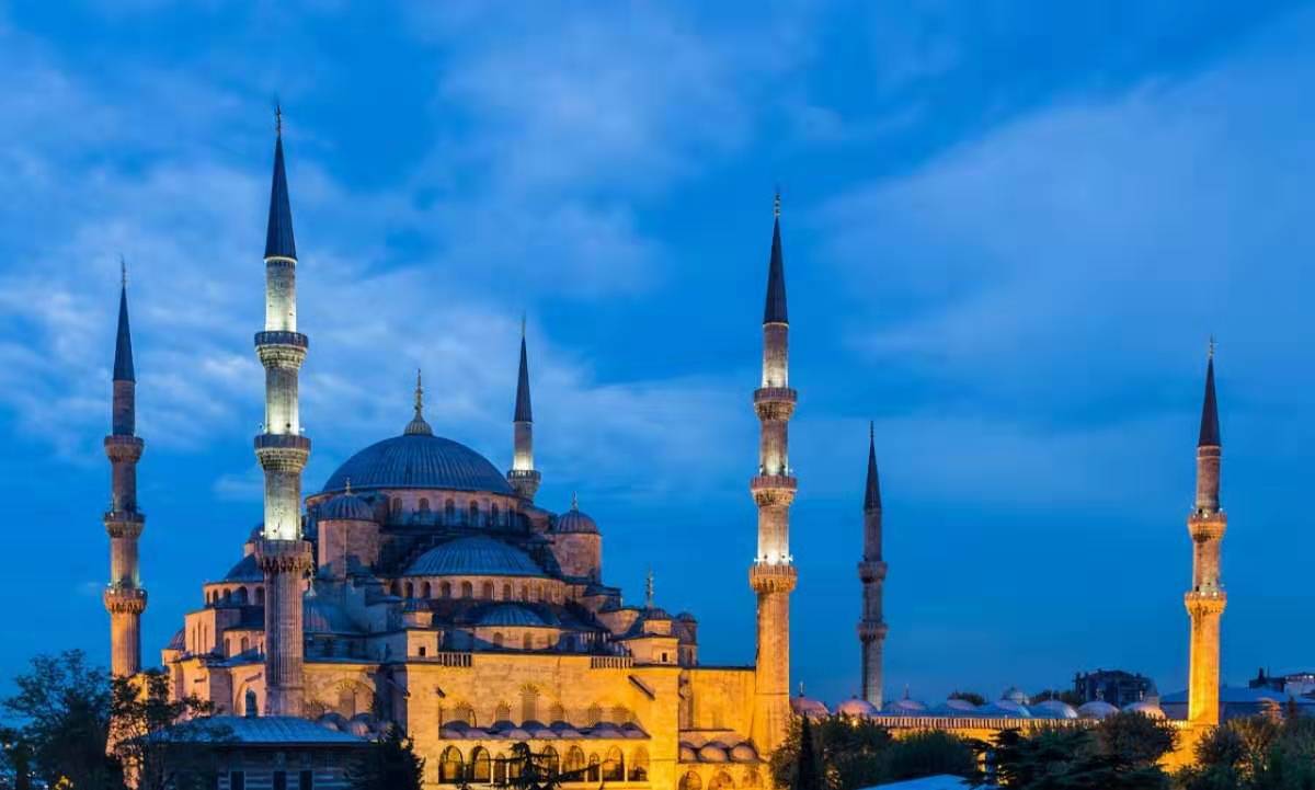 藍色清真寺,原名蘇丹艾哈邁德清真寺,土耳其著名清真寺之一,17世紀初由伊斯蘭世界著名古典建筑師錫南的得意門生Mehmet Aga設計建造,因清真寺內墻壁全部用藍、白兩色的依茲尼克瓷磚裝飾故名,是伊斯坦布爾最重要的標志性建筑之一。