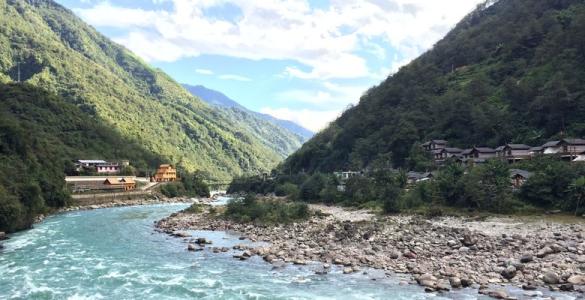 丙中洛境內(nèi)有國家級(jí)4A景點(diǎn)3個(gè),怒江第一灣、石門關(guān)和丙中洛田園風(fēng)光,省政府批準(zhǔn)的一級(jí)景點(diǎn)2個(gè),二級(jí)景點(diǎn)6個(gè),三級(jí)景點(diǎn)3個(gè)。丙中洛呈不規(guī)則四邊形,地勢(shì)北高南低,最高峰嘎娃嘎普雪山5128米,終年積雪。最低海拔為與捧當(dāng)鄉(xiāng)交界處江面1430米。鄉(xiāng)政府駐地丙中洛壩子海拔1750米,面積約為15平方公里,四面環(huán)山,整個(gè)壩子被念瓦洛河和格馬洛河分割成三大塊,平壩周圍的石崖多為羊脂玉巖,南為貢當(dāng)神山,北為石門關(guān),南北遙相呼應(yīng),怒江從北部的秋那桶深谷進(jìn)入丙中洛,從丙中洛南邊一直到大拉,形成彎彎曲曲幾道彎,最大的一道彎在坎桶被稱為“怒江第一灣”。