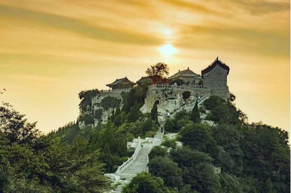 云門山風景區山腰處是“望壽閣”,原為元朝時期的“靈官廟”,后毀于戰火,1984年重修。因這里與山頂的“壽”字遙遙相望,于是更名為“望壽閣”。閣內的正殿建于懸崖之上,高大宏偉,古樸壯觀,正門匾額上書“望壽閣”三個大字,為著名書法家啟功題寫。殿內供奉福、祿、壽三星,東西兩邊的廂房里供奉關公和財神,許多游客喜歡在此進香拜神,希冀自己和家人一生平安,萬事如意。