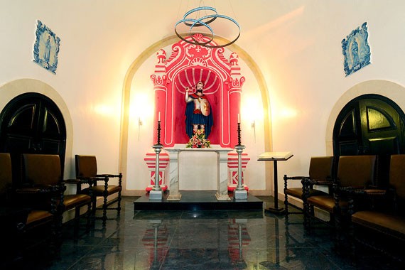 這座精致的小堂于1629年興建,于1740年重建于媽閣炮臺(tái)上, 即在澳門(mén)這個(gè)小城的尾端。當(dāng)時(shí),小教堂巳是一所葡式旅館建筑物的一部份,而旅館則建于炮臺(tái)的地基上,在這座精致的小教堂擺放圣人雕像及花地瑪圣母,伊莎貝皇后的瓷磚圖像。