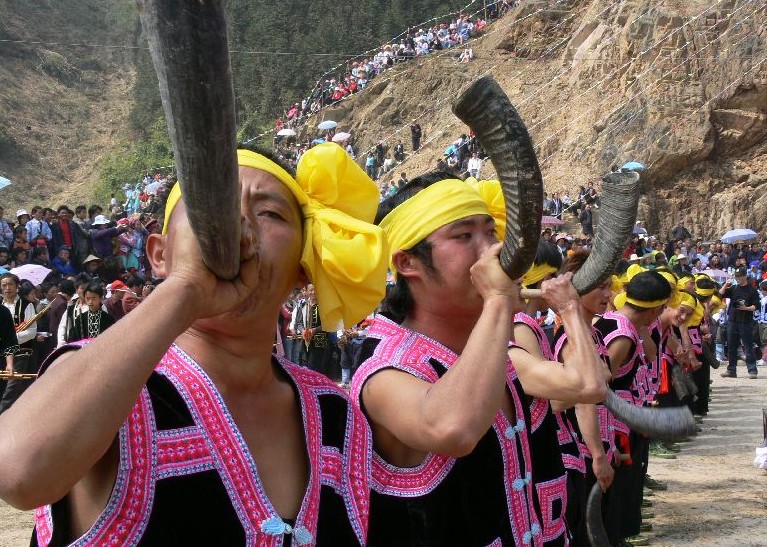 節日:大節日有盤王節、春節、達努節、中元節、社王節、清明節等,小節日幾乎每月都有。盤王節,俗稱“跳盤王”、“還盤王愿”。每 隔三五年舉行一次,時為農歷十月十六日,一般由一戶、數戶或一村進行。主要儀式由師公跳神祈禱,唱盤王歌,跳長鼓舞,禱告盤王(盤瓠) 保佑賜福。盤王節,一般是自稱“勉支”的瑤族的節日,十分隆重。