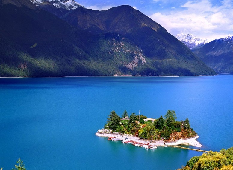 錯高在藏語中意為綠色的水,也稱為"巴松錯"。它距工布江達縣50多公里,是紅教的著名神湖。湖形狀如鑲嵌在高峽深谷中的一輪新月,長約12公里,湖寬幾百至數(shù)千米不等,最深處60多米,總面積6千多畝。湖水清澈見底,四周雪山倒映其中,黃鴨沙鷗白鶴等飛禽浮游湖面,湖中則是游魚如織,分外寧靜。湖心扎西島上有錯宗工巴寺,建于唐代末年。島上的礁石均雕刻成了別致的動物形象以及佛像。錯宗寺為土木結(jié)構(gòu),上下兩層,殿供強巴佛千手觀音和金童玉女。寺南有一株桃和松的連理樹,春天時桃花與青松相映,煞是好看。錯宗工巴寺寺僧與信從們都乘獨木舟往來。每值春季,湖四周群花爛漫,雪峰陳列并倒影湖中,景色宜人至極。湖西北還有一5平方米大的巨石,大石中心有一可供一人鉆過的洞,據(jù)說能鉆此洞可消災(zāi)除病。作為紅教著名的神糊。每年來此轉(zhuǎn)經(jīng)觀湖的群從非常多。