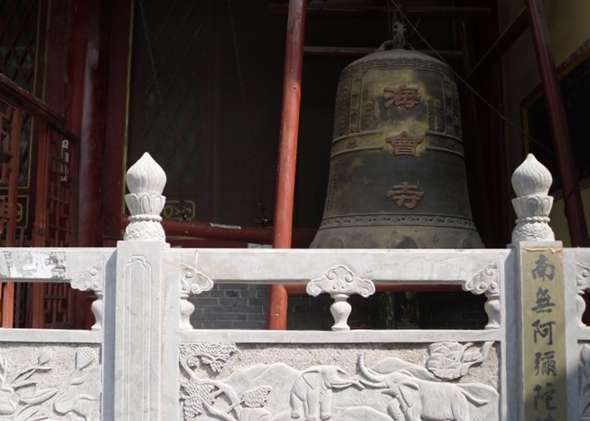 山門三間,額匾上書“海會寺”。山門東西各有旁門,山門內兩旁立有哼哈二將,像高1丈5尺。