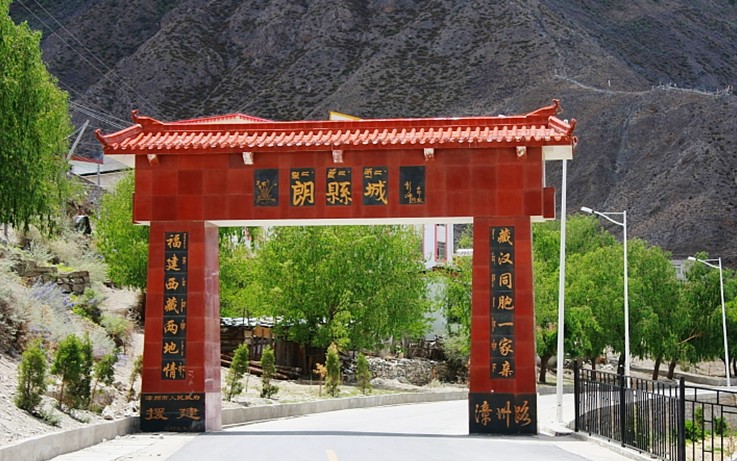 朗,藏語意為“顯現(xiàn)”、“想像”。1959年并朗宗、古如朗杰宗、加查宗和金東溪建立朗縣,由山南地區(qū)管轄。1982年林芝地區(qū)成立,朗縣劃歸林芝地區(qū)管轄至今。