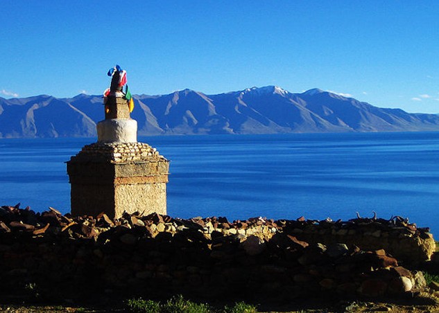 當惹雍錯被群山簇擁,唯南岸達爾果山東側有一缺口。據傳當惹雍錯當初是個魔鬼湖,后來象雄第一代王子也即是苯教的締造者敦巴辛繞制服了湖中的魔鬼,成為了神湖。達爾果山一列有七峰,峰頂終年白雪覆蓋,如七個戴了白帽的巨人并排站立忠實地守護著當惹雍錯。這里山光水色簡直就是圣景,它和當惹雍錯—起被人們奉為苯教的神山圣湖,其地位與佛教所認為的世界中心的崗仁波齊和瑪旁雍錯身價相等,且傳說湖底是相通的。