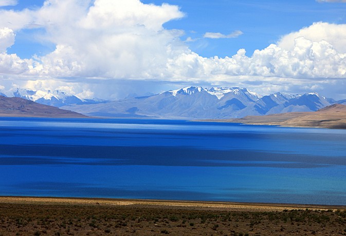 當惹雍措是藏北著名神湖,它位于那曲地區的一個深陷的湖盆底部,它與當惹雍措相毗鄰。當惹雍措湖面形似一金剛杵,上圓中細下部長,四面群山環抱,南面的達爾果山山頂積雪終年不化。實際上當窮措與當惹雍措是在同一個湖盆之內,湖水未枯以前本是同一湖泊。這正是當窮措名字的來歷,藏語里當窮措即小的當惹雍措之意。據說此湖在一天之中能變換三種顏色。湖東岸是連綿不斷、屏風般矗立的褚紅色山壁,它們清晰地記錄了當惹雍措湖水一次次下降的歷史。被湖水沖刷而成的階梯從湖畔山頂一圈又一圈地一直環繞到湖濱。