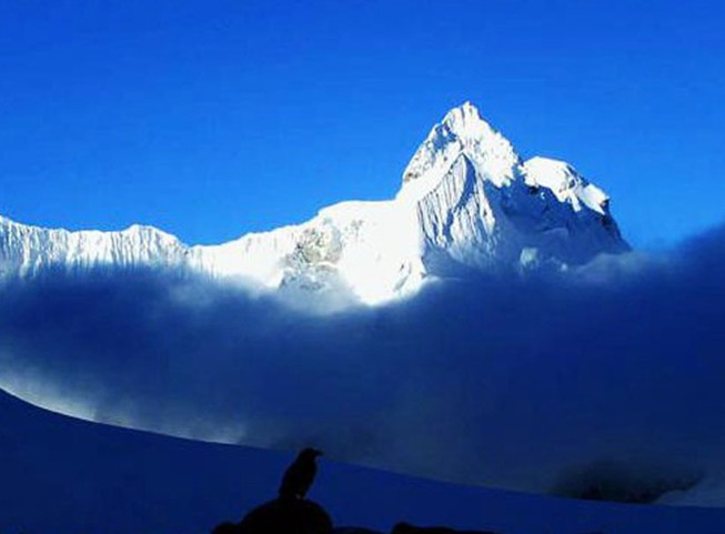 達(dá)果雪山位于那曲地區(qū)的尼瑪縣境內(nèi),是古象雄部落的神山之一,也是藏區(qū)4大雪山之一。山勢(shì)巍峨雄偉,千姿百態(tài)。峰頂銀色的冰雪閃著光芒,直插云端,四面有7座山峰如7位勇士坐落于主峰周圍,人們稱7兄弟或勇士7軍。此外,在達(dá)果雪山的周圍還有8座雪山,叫做“噶聶日巴切杰”,統(tǒng)稱達(dá)果七峰八嶺。據(jù)說(shuō),這幾座山為古象雄諸神的聚集處,也是象雄地區(qū)360座山峰的主脈。