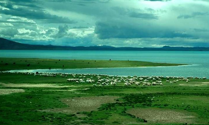 湖區(qū)為半干旱草原地帶,年均氣溫-0.6℃~-3℃,最熱月均氣溫9.4℃。年降水量約290毫米,6月~9月降水量占全年的90%,夏季多冰雹。湖周地區(qū)海拔5100米以下分布有紫花針茅草原;4600米以下湖積平原上分布有固沙草和白草草原;山麓分布有羽狀針茅和藏沙蒿草原;草原帶以上特別是山地陽坡,是由小蒿草和羊茅組成的高山草甸或高山草原化草甸。色林錯湖區(qū)是傳統(tǒng)的牧區(qū),主要放養(yǎng)牦牛、綿羊。