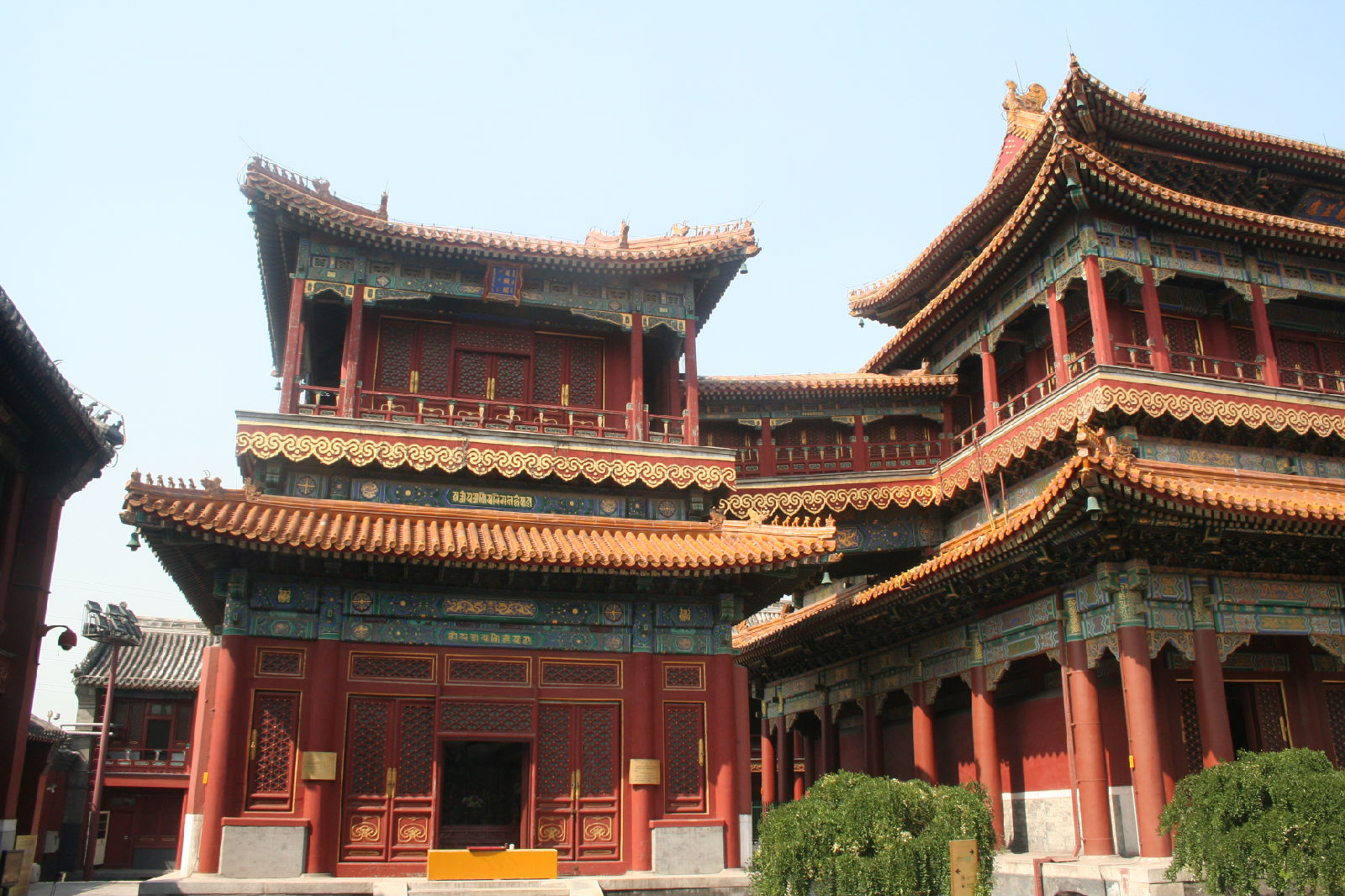 雍和宮(The Lama Temple)位于北京市區東北角,清康熙三十三年(1694年),康熙帝在此建造府邸、賜予四子雍親王,稱雍親王府。雍正三年(1725年),改王府為行宮,稱雍和宮。雍正十三年(1735年),雍正駕崩,曾于此停放靈柩,因此,雍和宮主要殿堂原綠色琉璃瓦改為黃色琉璃瓦。又因乾隆皇帝誕生于此,雍和宮出了兩位皇帝,成了“龍潛福地”,所以殿宇為黃瓦紅墻,與紫禁城皇宮一樣規格。乾隆九年(1744年),雍和宮改為喇嘛廟,特派總理事務王大臣管理本宮事務,無定員。可以說,雍和宮是全國規格最高的一座佛教寺院。