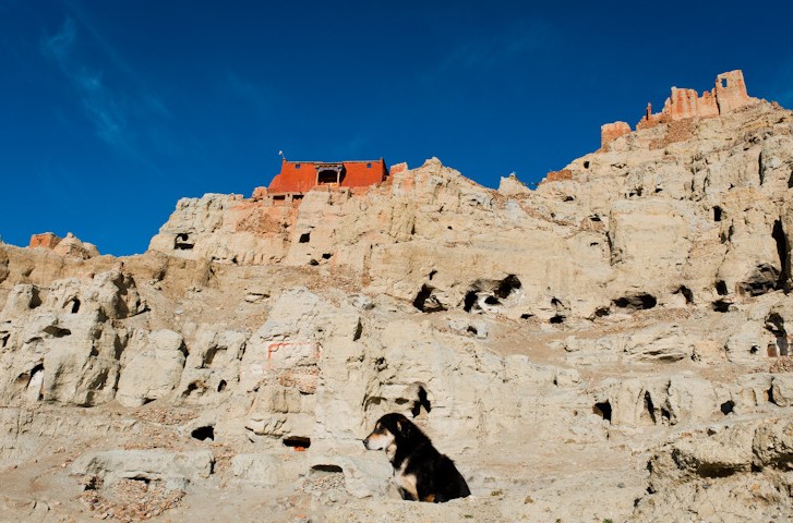 東嘎是扎達縣的一個靠山臨水,只有十幾戶人家的小村莊,在“古格王國”遺址西北約40千米。東嘎石窟散布在東嘎村北面斷崖上,路上能看到山上密密麻麻的洞窟。現(xiàn)存洞穴接近200個,延綿2千米,儼如蜂巢。其中繪有精美壁畫的幾個窟洞,集中在東面一片呈“U”字形的山崖上。