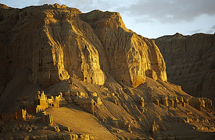 象雄與古格,兩個一度各領(lǐng)風(fēng)流的西部古國,從此消逝在歷史的煙云之中,令考古學(xué)家、歷史學(xué)家、民族學(xué)家們在浩翰的史海中苦苦搜尋,力圖用科學(xué)的證據(jù)來復(fù)原其歷史的舊貌。關(guān)于古格王國,雖然各國的歷史學(xué)家與考古學(xué)家曾作過大量的調(diào)查研究工作,但也有許多問題時至今日仍然藏在云山霧海之中未能得解。其中,一個最令考古學(xué)家感興趣的問題在于:當(dāng)年這個王國最強盛時,一度號稱達到十萬之眾,但古格王國都城遺址扎不讓所有能住人的洞窟加起來,也只能容納兩千人左右,這不能不讓學(xué)者們推測,在這片神秘的土地上,一定還有無數(shù)個像扎不讓這樣的古城堡隱藏在大漠荒原深處,被歷史的風(fēng)塵所掩蓋。