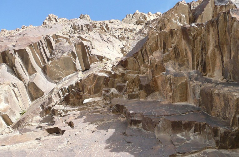 巖畫的內容較豐富,主要以狩獵、放牧、征戰、動物、器物、自然物等為內容。動物的種類包括虎、鹿、羊、野豬、狗、水鳥、老鷹等;人物有獵人、武士、牧人以及人獸一體的神靈形象;武器主要有弓箭、弩、長茅、刀、箭等;自然物包括太陽、月亮及植物等。上述的巖畫大部分為早期金屬時代的巖畫作品,通過這些作品真實的反映了班公湖地區古代游牧民族的生產和生活的生動場面,他們生活在大自然中,在改造大自然的同時,苦苦求索利用大自然,創造自己的美好生活。雖然巖畫的線條粗糙,造型顯得呆板,但質實古樸,頗能引起游客思古之幽情.