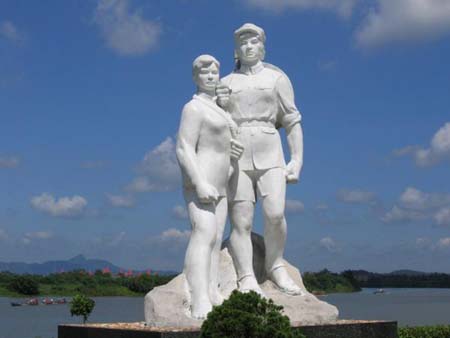 紅色娘子軍是中國革命的壯舉,也是世界婦女爭取解放斗爭的突出典型。塑像由花崗石雕刻而成,坐北向南,高3.7米,連底座總高6.8米,占地面積40平方米。塑像后面是園林花圃。