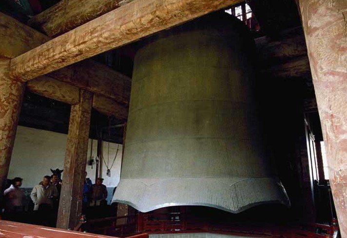 輕擊大鐘,其音圓潤(rùn)、深沉、古雅;重?fù)魟t純厚、洪亮、莊嚴(yán)。內(nèi)行人能辨出1?3?5?Ⅰ等完全諧和音組成的泛音系列。無論該鐘的音質(zhì)、音色還是傳播距離,在世界古鐘之林中,都名列前茅。