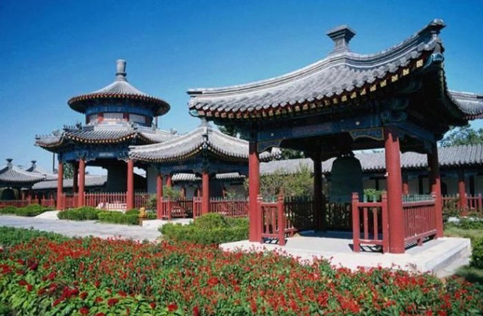 大鐘寺曾是清朝皇帝祈雨的地方,寺院坐北朝南,由南往北依次為山門、鐘鼓樓、天王殿、大雄寶殿、后殿、藏經(jīng)樓、大鐘樓和東西翼樓,另外還有六座配廡分布在兩側(cè)。大鐘樓是寺內(nèi)獨(dú)具特色的核心建筑,它矗立在一座巨大的青石砌成的臺(tái)基上,整個(gè)鐘樓上圓下方,象征“天圓地方”,青石臺(tái)基上砌有八角形“散音”池,在它的作用下,輕擊大鐘時(shí),方圓百余里均可聽到純厚、古雅的鐘聲,余音可持續(xù)3分鐘之久。