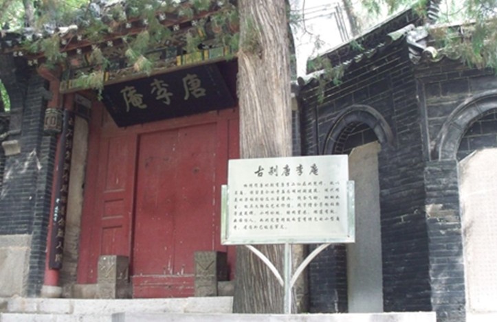 《鄒平縣志》載:相傳古有唐李二仙,修真于此山,故名唐李庵。約建于金元年間。山門東面墻上鑲嵌二通石碑,一為明隆慶元年十一月,鄒平人張應(yīng)貞撰寫的《重修唐李庵記》;另一為康熙十年青城人董朱袞撰文《重修唐李庵碑記》。山門西面墻上亦有古碑二通,分別是嘉慶十一年成瓘所撰《重修唐李庵之碑》,及道光二十五年鄒平人石顯文所寫《唐李庵碑記》。石碑背面皆正楷陰刻著重修時捐資人的姓名及出資數(shù)目。