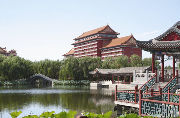 第一城于1992年10月18日開始興建,以明清兩代北京城為藍本,將老北京的城垣微縮,分為內外兩大部門。內九外七,版權所有山東聊城聊之旅國際旅行社有限公司,轉載必究!十六個城門,另有六個角樓,共計22個城樓,城樓間有八米高的城墻相連。這些城樓和城墻均按明清京城以1:1的比例修建,只是將城墻長度縮短(周長5公里),并改為內部兩層的空腹式城墻,作為客房、餐廳或辦公場所,為保證質量和效果,這些城墻磚都是在西安定制的。