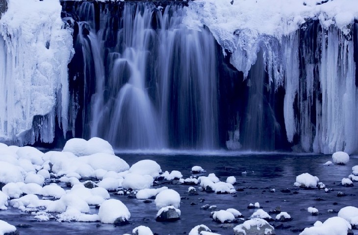 遠觀吊水壺瀑布如飛簾掛壁,白練當空;近看垂珠濺玉,如煙似霧。夏日里四處飛濺的浪花,忽而白如飛雪,似錦帛飄逸,忽而五色繽紛,賽飛虹流瑩;冬天如巨大結晶的冰川倒懸山崖,雪掩溪流沿冰縫間石壁沖下,樹枝上形成層層霧淞,林中呈現一片玉樹銀花的壯美景象。