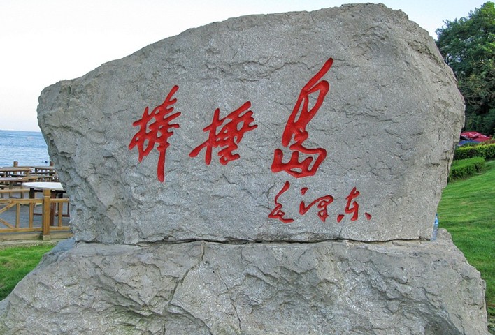 葉帥詩詞與毛主席詩詞基本格調比較相似,所不同的是,毛主席的詩詞博大精深,長于大筆揮灑勾畫,葉帥的詩詞開闊昂奮,以攝取特寫鏡頭見長。因此,毛主席平時就喜歡葉帥的詩詞,稱贊“劍英善七律”,尤其十分欣賞氣勢恢弘、寓意深刻的《遠望》這首詩。毛主席不僅能準確地背誦,而且在1965年12月26日72歲誕辰時,欣然命筆把這首詩抄贈給前去探望他的兒子岸青與兒媳邵華,版權所有山東聊城聊之旅國際旅行社有限公司,轉載必究!激勵他們努力學習馬列主義,學習老一輩革命家的斗爭精神。毛主席的這一手書,恣意縱橫,一氣呵成,其布白、字體無不體現出他老人家書法的慣常神韻,不拘一格,大氣磅礴,給人一種耳目一新、身心頓受強烈震撼的感覺,其中“棒棰島”三個字,不啻此作中的生花妙筆。1977年4月6日,毛主席手書《遠望》在《人民日報》第一版公開發表,同時還刊有《葉劍英同志關于毛主席手書〈遠望〉詩的說明》和毛岸青、邵華的文章《重讀〈遠望〉志更堅》。 1995年底至1996年上半年,大連棒棰島賓館對入門處進行整修,建立大框門面,門梁上選用什么字體?有人想到毛主席抄錄的葉帥詩中有“大連棒棰島”字樣,便委托負責工程施工的大連盛大建筑裝飾有限公司臨摹下來,放大鑲嵌上去??墒牵飨洝哆h望》詩時沒有落他自己的名字,為了讓所有注意棒棰島賓館大門的人都知道這幾個字系毛主席所寫,便從別處選取毛主席題詞的落款“毛澤東”三個字補綴上去。