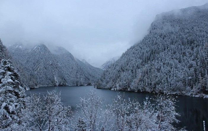 長(zhǎng)海海拔3060米,最高處4457米,面積約200萬(wàn)平方米。長(zhǎng)約8公里,順山彎去,頭深藏在層巒疊嶂的山谷之中,是九寨溝最大的海子。海子對(duì)面,雪峰皚皚,冰斗、“U”字谷等典型冰川景觀,歷歷在目,岸旁林木葉茂,一眼望去,水似明鏡,巍巍雪峰,沐浴在藍(lán)天白云之中,壯觀奇麗。此湖區(qū)水面大,但無(wú)地表出水口,夏秋暴雨,水不溢堤,冬春久旱,亦不干涸。藏胞贊美它是“裝不滿、漏不干的寶葫蘆”。隆冬時(shí)節(jié),冰凍厚達(dá)60厘米,傳有怪獸出沒(méi)。