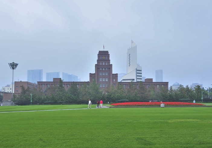 總面積12.5萬平方米,其中草坪面積4萬平方米。北面坐落的是大連人民政府,東西分別是公安局、法院、檢察院,廣場南部是一座升旗臺和大型音樂噴泉。改建后的人民廣場,最突出的特色是變原來以草坪為主的靜態廣場為以水景為主的動靜相結合的廣場,從而使這里更增添了許多歡樂氣氛。