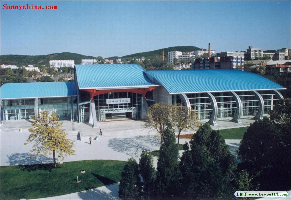坐落在風(fēng)景秀麗的旅順太陽溝景區(qū)的博物苑內(nèi)。占地面積14000平方米,建筑面積5000平方米,總投資2300萬元。整體建筑為流線型鋼混框架結(jié)構(gòu),建筑形體以實(shí)墻與大玻璃幕墻圍合而成,屋頂最大高度17.2米,最大跨度為46.5米,該館是大連市重點(diǎn)旅游工程項(xiàng)目之一。