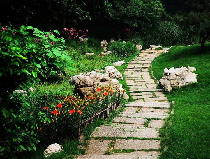 園內(nèi)山勢起伏,碧草如毯,石徑曲折,花溪蜿蜒,四季樹木蔭翳,春來繁花似錦,一座座名人雕塑錯落有致地分布其中,或坐、或立,靜謐安詳,栩栩如生,平添了許多文化氣息。 在這里人文景觀與自然景觀水乳交融,加之陣陣幽香襲人,絲竹之聲悠揚,如詩如畫,令人陶醉。一對對新人不知為景致所動還是為氣氛所染,總不忘在結婚大喜之日來到這里, 于雪紗翠坪間留下永恒的美好回憶。于是,便有了“碧水映綠樹,美景襯佳人”之說。在喧囂塵世中身心疲憊的都市人閑暇之時來到這里,便仿佛走進了世外桃源,或賞景、或垂釣、或閑坐小酌都會心清氣爽,流連忘返。