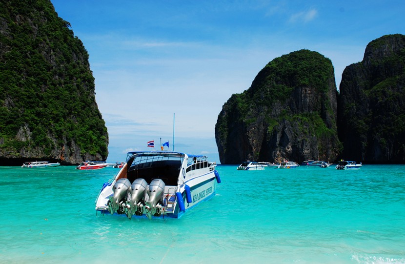 由各種途徑抵達普吉或甲米之后,終于可以乘船前往皮皮島了。如果游客在普吉的旅游代理店預定船票,可乘坐代理店的的小巴(Mini Bus)直達碼頭,普吉的詩里島碼頭(Ko Sirey)、馬堪灣碼頭(Makham Bay)、查龍灣碼頭(Chalong Bay)都有船只開往皮皮島,船費250泰銖左右,航行時間約2小時;在甲米市區(qū),有小巴和出租車前往海邊碼頭,可以在趙發(fā)碼頭(Jao Fa)搭船前往皮皮島,航行時間約1小時30分。