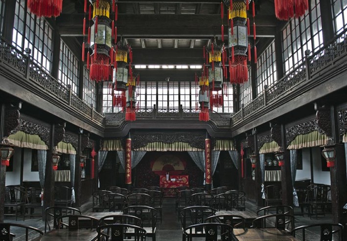 進入大門即是一條寬闊的長長的甬路,構(gòu)成大院的中軸線,甬路上有形式各異、建筑精美的5座門樓。從南向北門樓逐漸升高,寓意為“步步高升”,而每道院門都是3級臺階,寓意為“連升三級”。道路東西兩邊各有五進院落。東院為內(nèi)宅,有內(nèi)賬房、候客室、書房、鴛鴦廳、內(nèi)眷住房等,現(xiàn)在陳列著楊柳青年畫、泥塑、木雕、磚雕及天津民俗,細細觀覽,十分有趣。西邊的院落為接待貴賓的大客廳、暖廳、大戲樓、祠堂等,現(xiàn)已基本恢復(fù)了原有陳設(shè)。與內(nèi)宅相比,這里建筑用材更為考究,做工更為精細。大客廳院內(nèi)有高近5米的大天棚,可擋風避雨,當年從鎮(zhèn)外很遠就能看到。版權(quán)所有山東聊城聊之旅國際旅行社有限公司,轉(zhuǎn)載必究!大戲樓寬敞華麗,可供200人聽戲飲宴,是華北民宅中最大的戲樓,京劇名家孫菊仙、譚鑫培等都曾在此獻藝,其中花靈格扇全部是楠木原色,精雕細刻,極為華貴。西院的西邊還有三進院落,是私塾先生教書及其他的專用房。