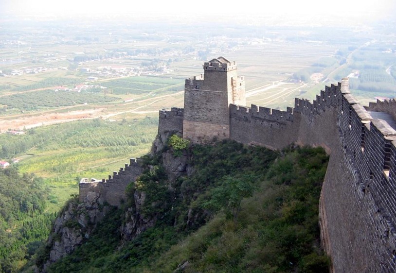 角山景區(qū)集山、城、寺為一體。大門(mén)是仿明代城堡建筑形式設(shè)計(jì)的。其造型像個(gè)“山字”。正額“角山長(zhǎng)城”匾是原國(guó)務(wù)院副總理、中國(guó)長(zhǎng)城學(xué)會(huì)會(huì)長(zhǎng)黃華題寫(xiě)的,背額“碧海峰”匾為當(dāng)代詩(shī)人賀敬之的手筆。有詩(shī)云:“自古盡道關(guān)城險(xiǎn),天險(xiǎn)要隘在角山,長(zhǎng)城倒掛高峰上,俯瞰關(guān)城在眼前。”足以證明角山的險(xiǎn)要。角山長(zhǎng)城是明朝遼東鎮(zhèn)和薊鎮(zhèn)兩座軍事重鎮(zhèn)的界線,建有敵臺(tái)、戰(zhàn)臺(tái)5座,關(guān)隘一座。站在角山最高峰大平頂上,極目遠(yuǎn)眺,令人遙想到當(dāng)年古戰(zhàn)場(chǎng)上戰(zhàn)鼓齊鳴、刀光劍影的壯闊場(chǎng)面。
