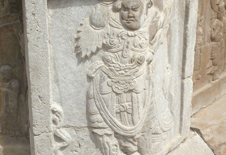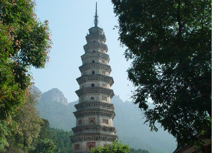 “辟支”出于佛教,音譯為“辟支迦佛陀”,略稱(chēng)“辟支佛”,辟支塔,意即辟支佛塔。辟支塔為一座八角九層樓閣式磚塔,塔高55.7米,塔基為石筑八角,上有浮雕,鐫刻有古印度孔雀王朝阿育王皈依佛門(mén)等故事。塔身為青磚砌就,各層皆施腰檐,下三層為雙檐,二至四層檐下置平座。塔檐與塔徑自下而上逐層遞減,收分得體。塔內(nèi)一至四層設(shè)塔心柱,內(nèi)辟券洞,砌有臺(tái)階,可拾級(jí)而上,自第五層以上砌為實(shí)體,登塔須沿塔壁外腰檐左轉(zhuǎn)90度進(jìn)入上層門(mén)洞。塔身上置鐵質(zhì)塔剎,由覆缽露盤(pán)、相輪、寶蓋、圓光、仰月、寶珠組成,自寶蓋下垂八根鐵鏈,由第九層塔檐角上的八尊鐵質(zhì)金剛承接,在塔內(nèi)延續(xù)到地下,起避雷作用。辟支塔氣勢(shì)雄偉、造型美觀、結(jié)構(gòu)復(fù)雜、比例適當(dāng),呈典型的宋代風(fēng)格,為靈巖寺標(biāo)志性建筑。宋代文學(xué)家曾鞏有詩(shī)贊曰“法定禪房臨峭谷,辟支靈塔冠層巒”。
